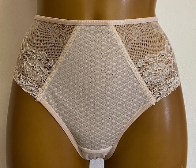 Velmi oblíbené kalhotky vyššího střihu z příjemného materiálu jsou zdobeny krajkovými vsadkami na přední části.