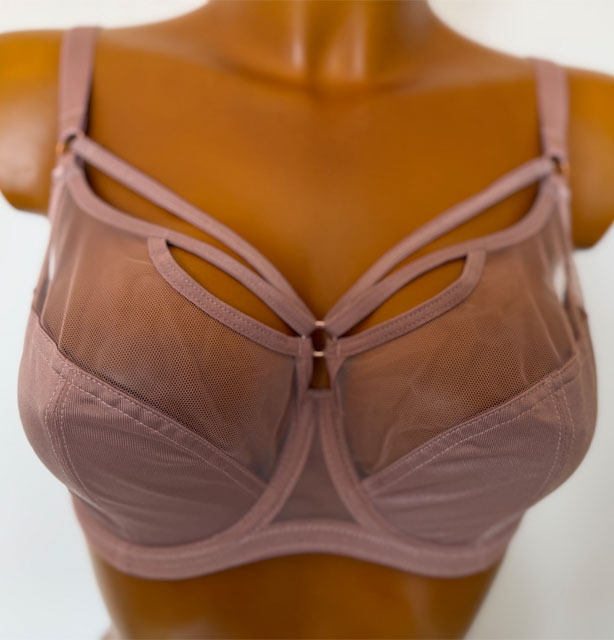 Nevyztužená podprsenka s kosticemi je zdobena strapsy (ozdobnými pásky). U tohoto modelu je používaná nová technologie podšití tenkým novým speciálním materiálem, který je absolutně stabilní a zároveň i příjemný. Ramínka jsou nastavitelná a zapínání je na dva háčky s možností tří poloh.